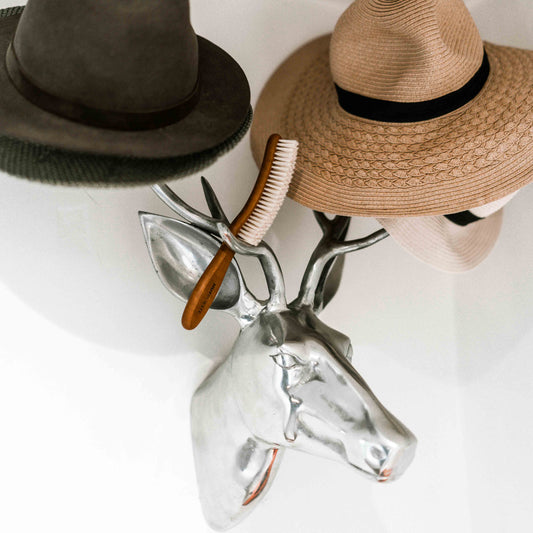 Our selection of wooden hat brushes is perfect for keeping your collection clean and dust-free. With a curved shape that contours to your hat, our brushes are delicate enough for even the most sensitive fabrics. Choose from a firm bronze wire and bristle brush for your winter felt and fabric hats, or a soft light bristle brush for your summer straw and delicate hats. Take pride in your hats by keeping them pristine with our top-quality hat brushes.