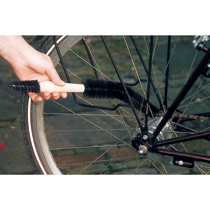 For bicycles, motorbikes, tricycles - even monocycles - our bike brush is cleverly shaped to clean between spokes, behind and around the guard plate, around gear rings and all the dirty areas of your cycle. Also ideal for cleaning car rims and wheels. The smaller brush end is ideal for cleaning gear rings and other smaller, fiddly areas on your bike. Hand crafted from untreated beechwood set with tough, black bristle, it measures 38cm long and 4cm diameter and makes the perfect gift for cyclists and motor enthusiasts.