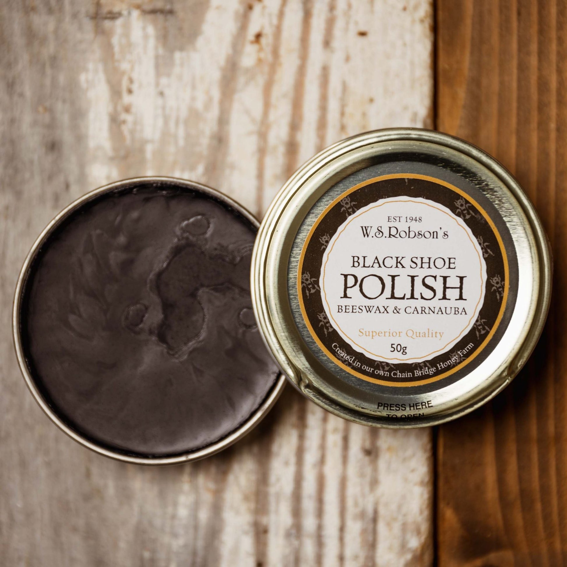 If you’ve invested in quality shoes, invest in this quality Beeswax and Carnauba Black Shoe Polish. It helps prolong the life of leather and gives a lasting shine.