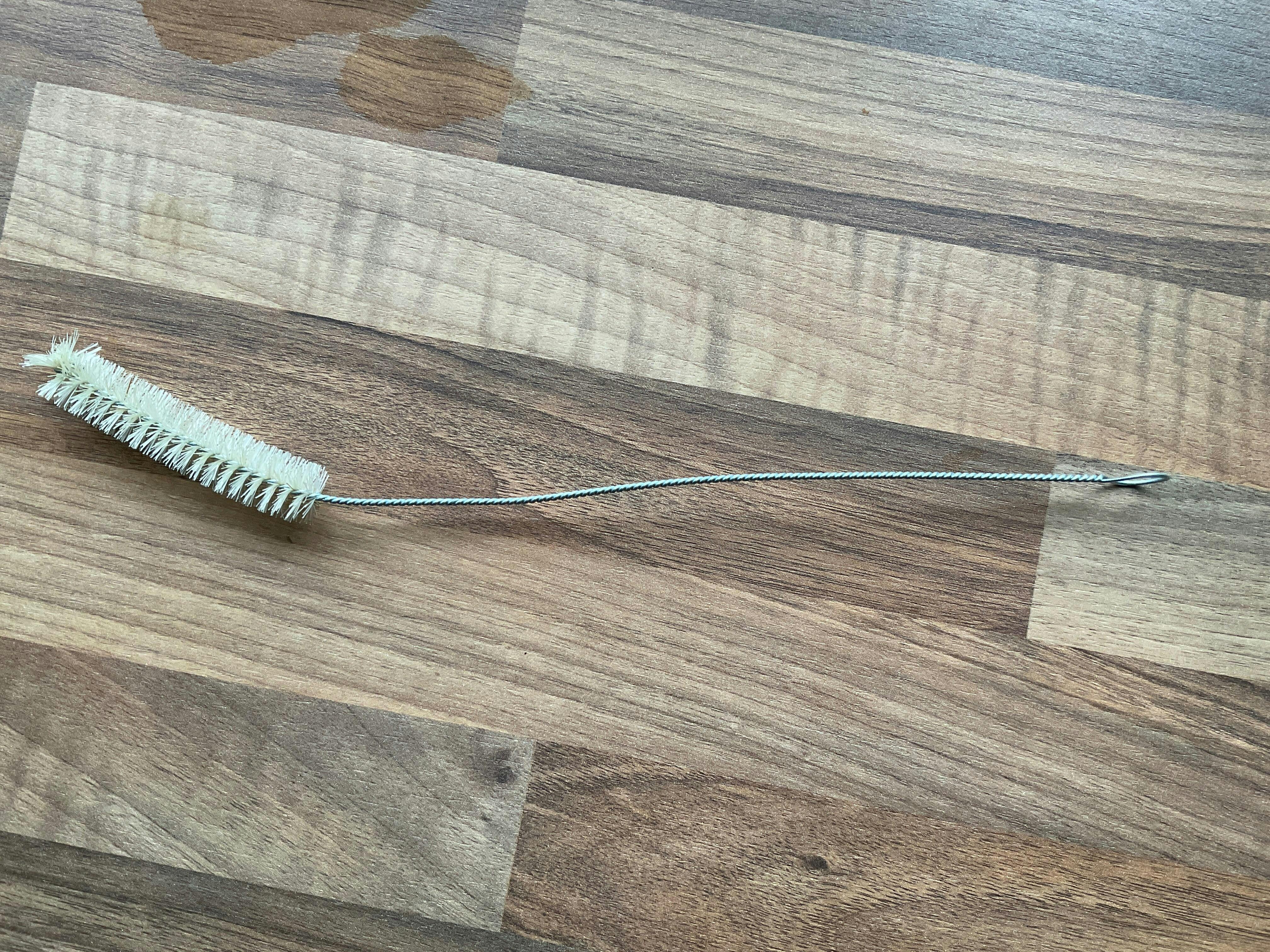 Medium tough, bristle brush set on twisted wire for cleaning pipes, tubes, vases, and bottles. Measuring 27cm long with a 7cm long x 1.5cm diameter brush head.