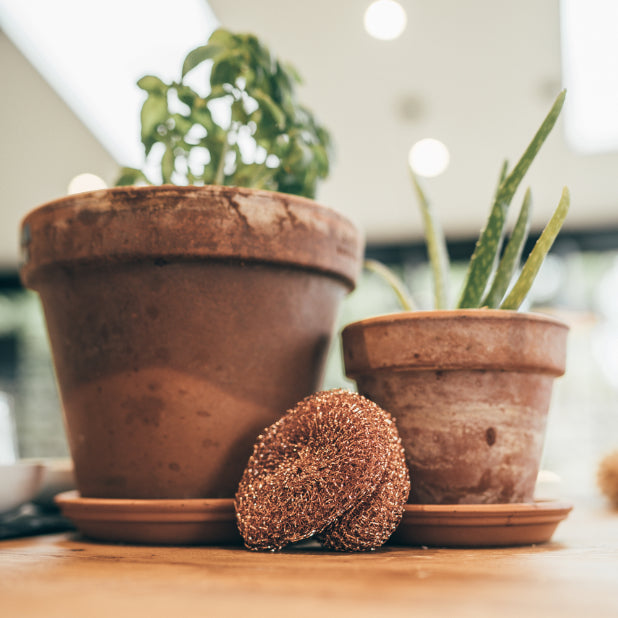 A useful copper scourer which easily cleans pots, pans, sinks, ovens, ceramic cooktops, glass, stainless steel and more. Whilst being extremely tough, it is also very gentle on delicate surfaces thanks to the soft, non-abrasive nature of copper, leaving no scratches on enamel or ceramic worktops.
