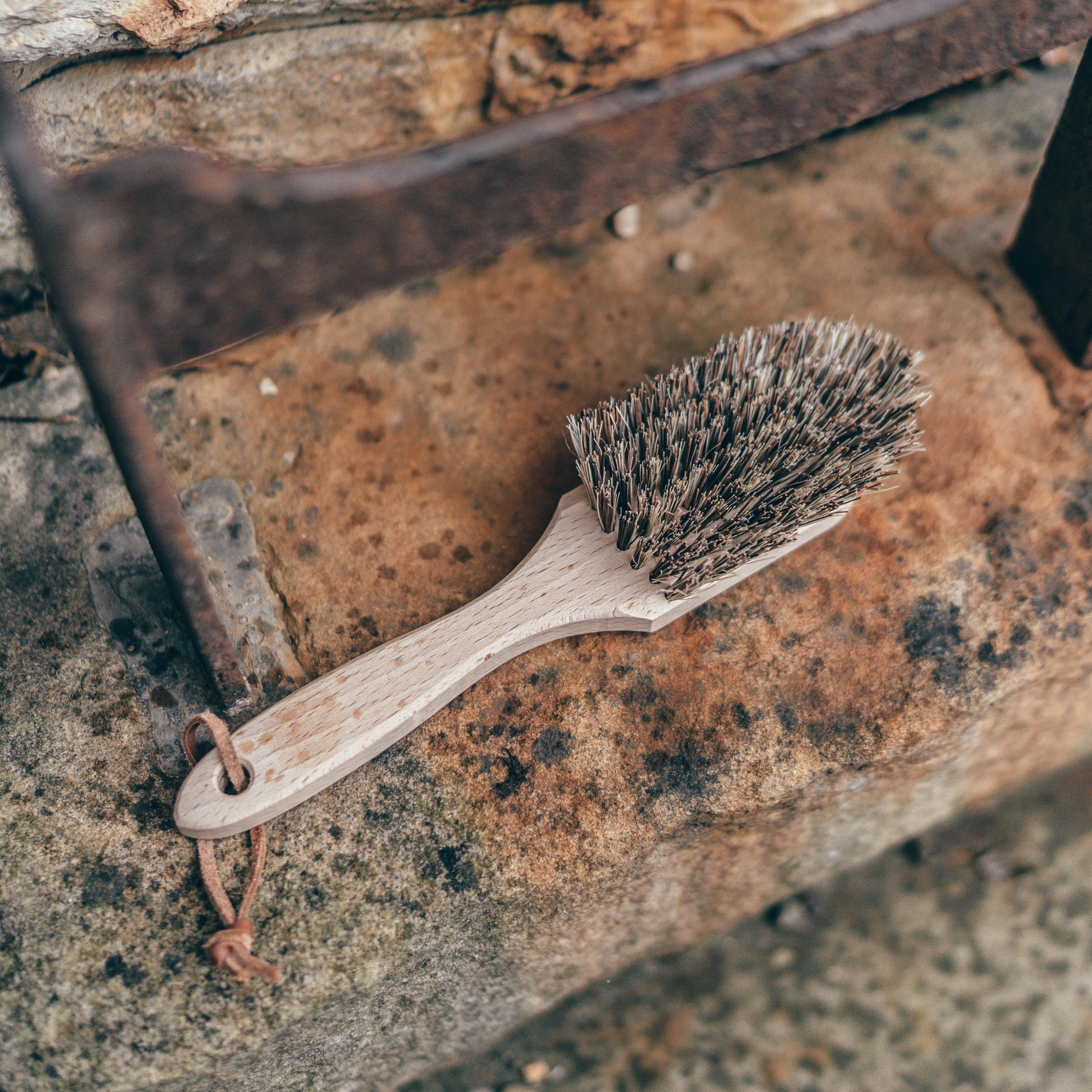 A rare find, our corner scrubbing brush has a long, untreated beechwood handle and is set with tough union fibre shaped into a pointed end to reach easily into corners and along edges. Fitted with a loop for hanging when not in use, it measures 26cm long x 5cm high.