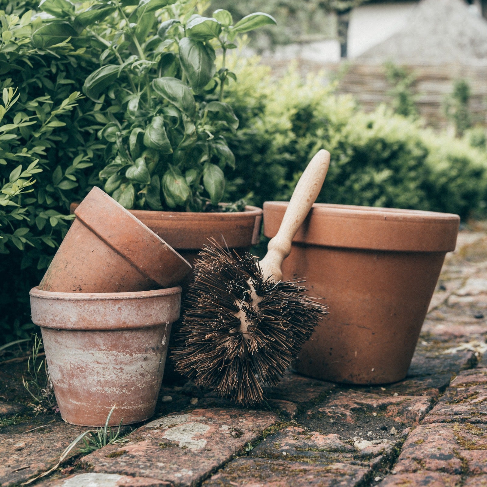 Whether you are a beginner at gardening or naturally green-fingered, nothing beats getting the terracotta pots ready for the sowing and seeding season ahead. Get your pots up to scratch with our conical shaped flower pot brush. Hand crafted from oiled beechwood and palmyra fibre, simply insert into the pot and twist to remove caked on soil and encrusted dirt. 23cm long and approximately 12cm diameter max.