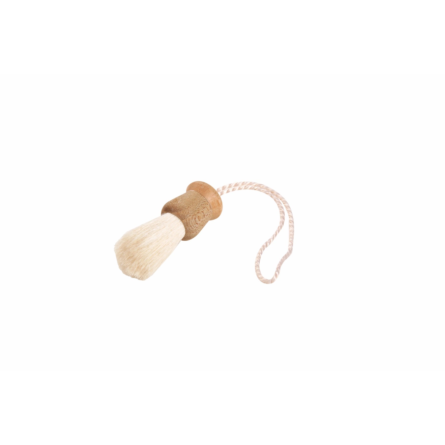 Perfect for travel and for those who like to keep a shaving brush at the ready for unexpected stop overs, our miniature shaving brush is hand crafted from natural, untreated beechwood set with softest goat hair and finished with a cord loop for hanging. Measuring just 4.2cm long, it is extremely soft and works equally well as standard sized brushes, despite its diminutive size.