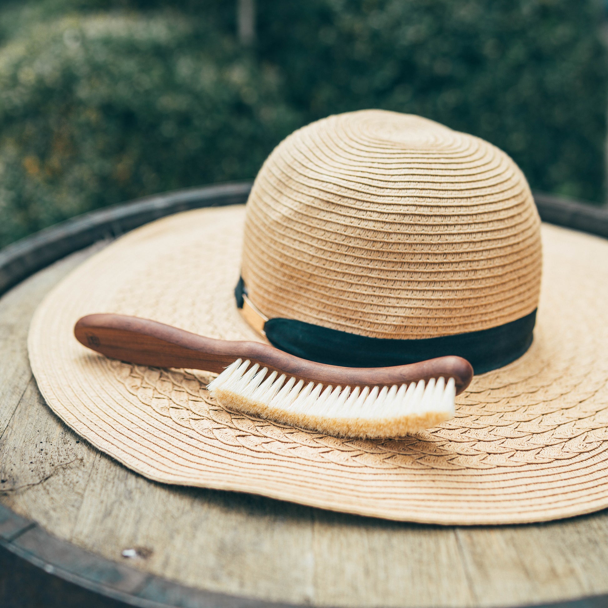 A wardrobe essential from a bygone era, a proper hat brush will restore dusty straw hats to former glory for the season ahead after a winter in hibernation. Elegantly curved, its crescent shape follows the contours of your hat ensuring the gentlest brushing on fragile and delicate materials.