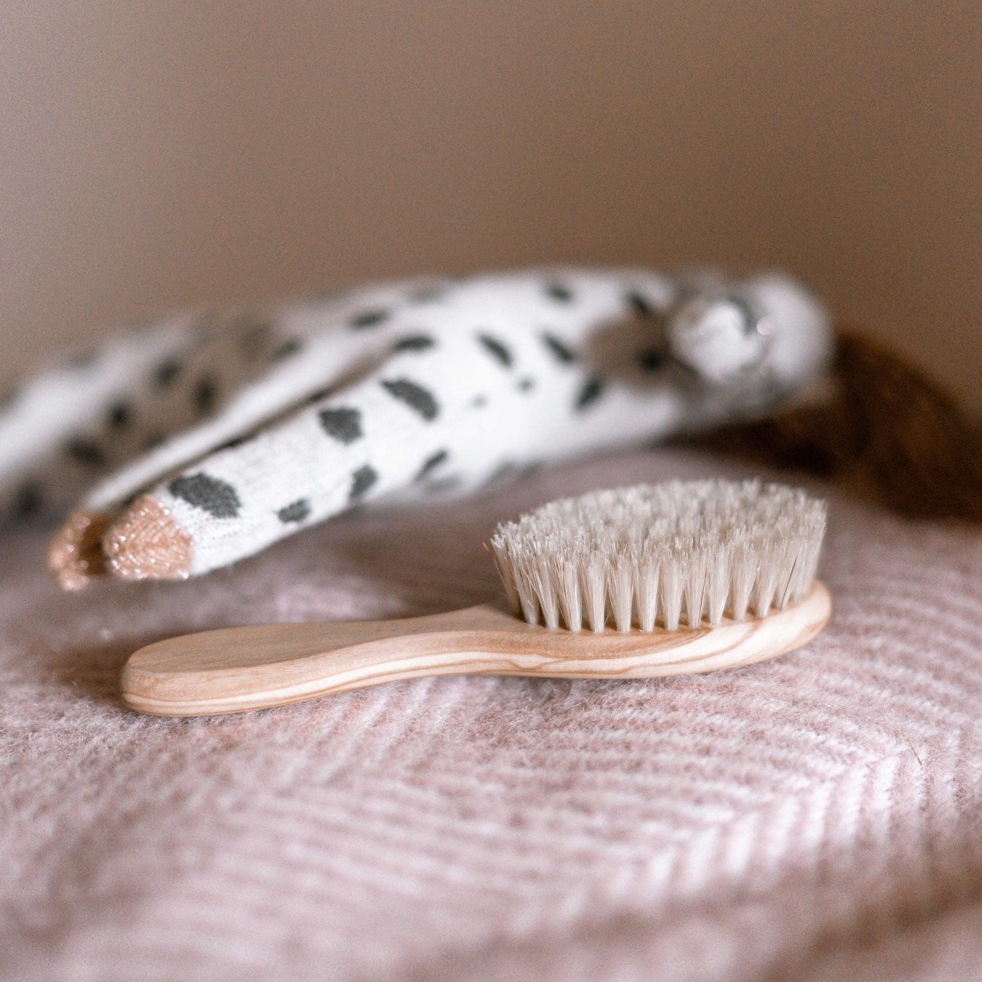 Our oiled olive wood children's hairbrush is beautifully hand crafted with soft light bristle, for gentle hair brushing.
