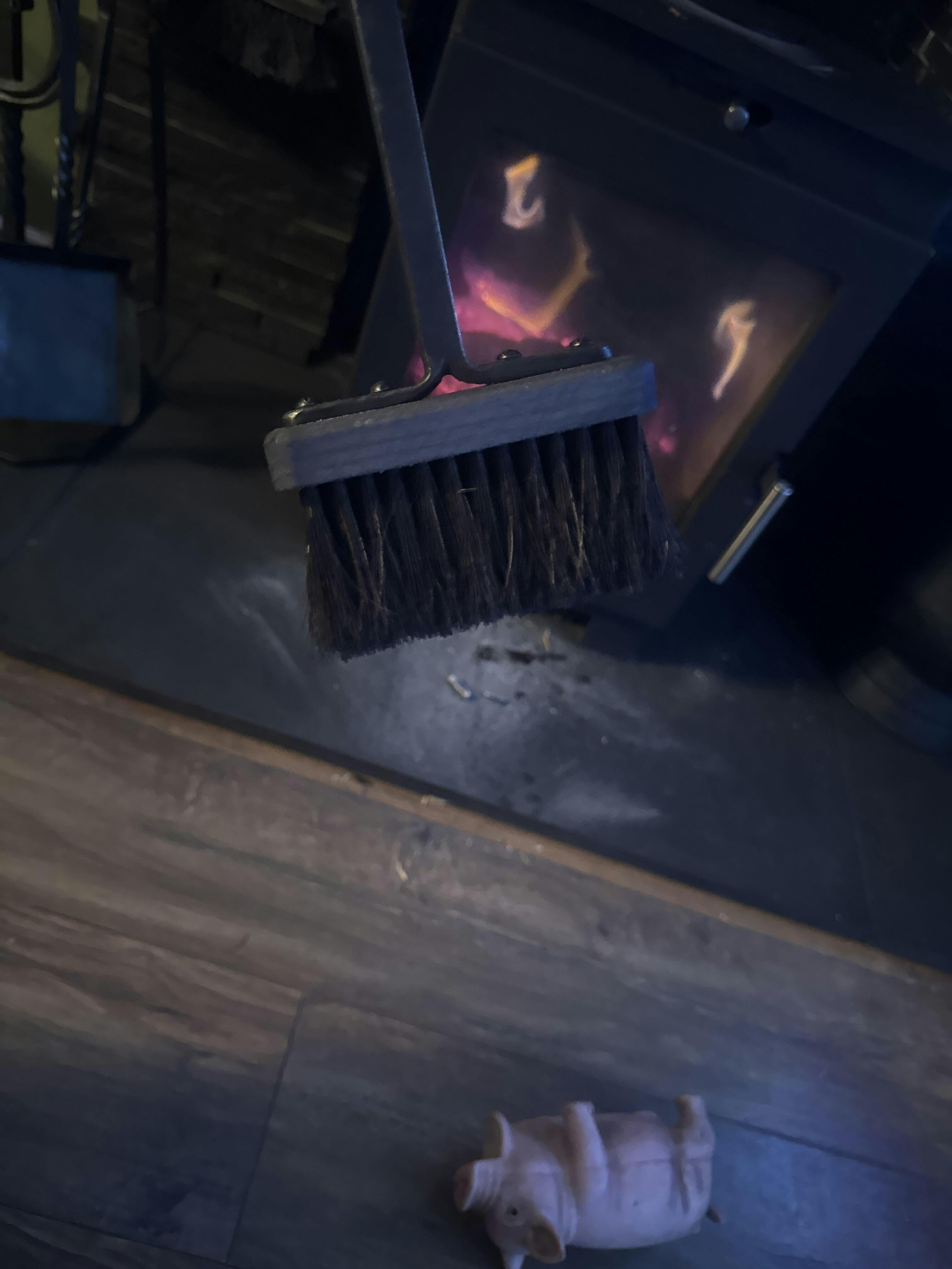 Hand crafted from arenga fibre and stained wood, this little brush can be used to sweep away soot and debris from the fire or woodburner as it is or else attached to an existing fire iron handle in a companion set to replace the brush head, in which case it requires fixings or hole drilling to attach to fire iron handle (not supplied). 12cm long x 5cm high.