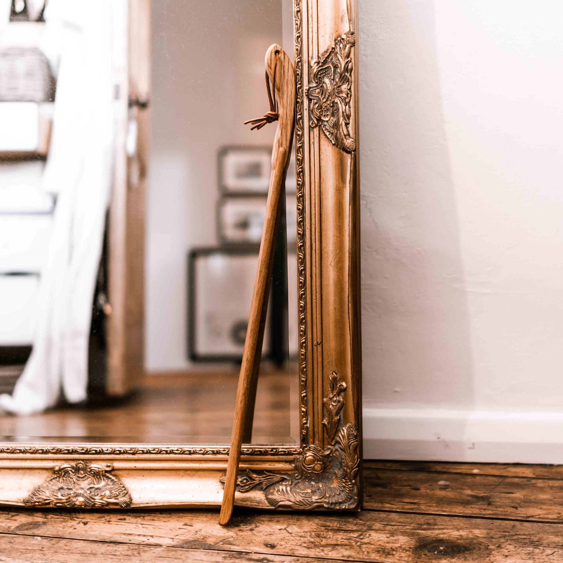 Extra long shoehorn hand crafted from dark, oiled oak to easily assist with putting on and removing footwear for those who find it difficult to bend or stretch. Finished with a leather hanging loop, it measures a substantial 65cm long.