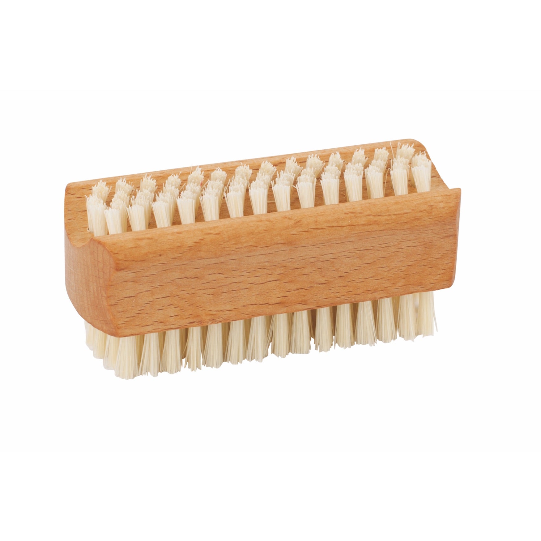 An oiled beechwood nailbrush hand crafted with upper and lower rows of light bristle. With indented sides for comfortable handling and firm grip, the brush has an upper triple row section of stiff, light bristle for tough cleaning, whilst the main brush section beneath is medium texture light bristle for general scrubbing of hands and nails.